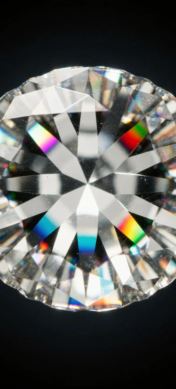 AbstractStunning high-resolution abstract wallpaper featuring a precision-cut gemstone with complex light refractions, rainbow colors, and brilliant white geometric patterns.