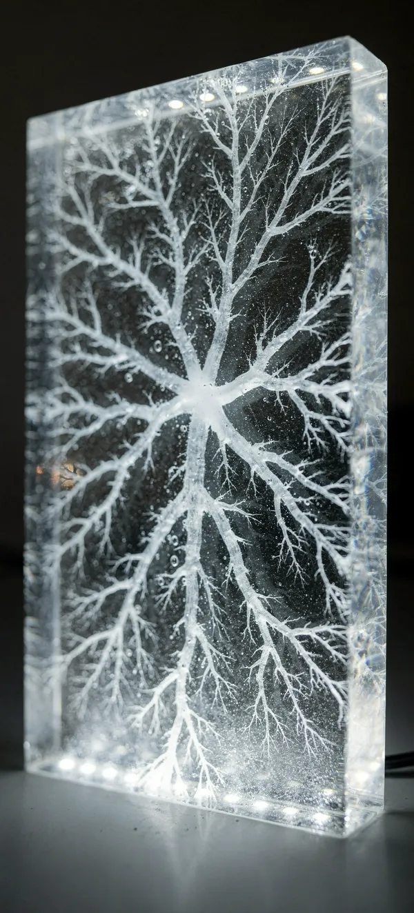 AbstractStunning abstract Lichtenberg figure wallpaper featuring electric blue branching fractal pattern burned into clear acrylic, perfect for modern smartphone backgrounds.