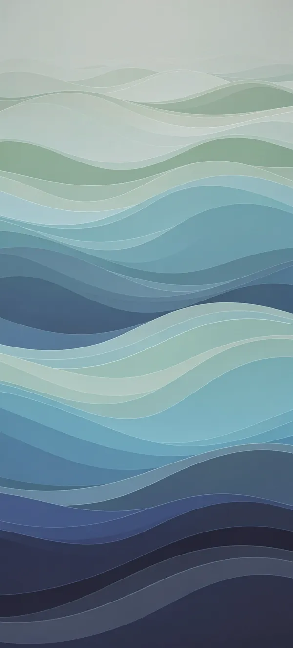 AbstractImmersive oceanic abstract wallpaper featuring layered sine waves in stunning navy, cerulean, and seafoam gradients. High-quality digital art mobile background.