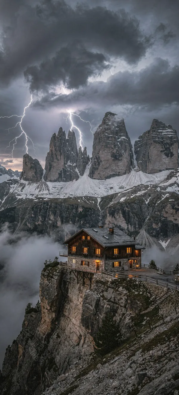 NatureIntense Dolomite mountain thunderstorm wallpaper featuring lightning strike, rocky peaks, and dramatic stormy landscape in stunning high-resolution detail.