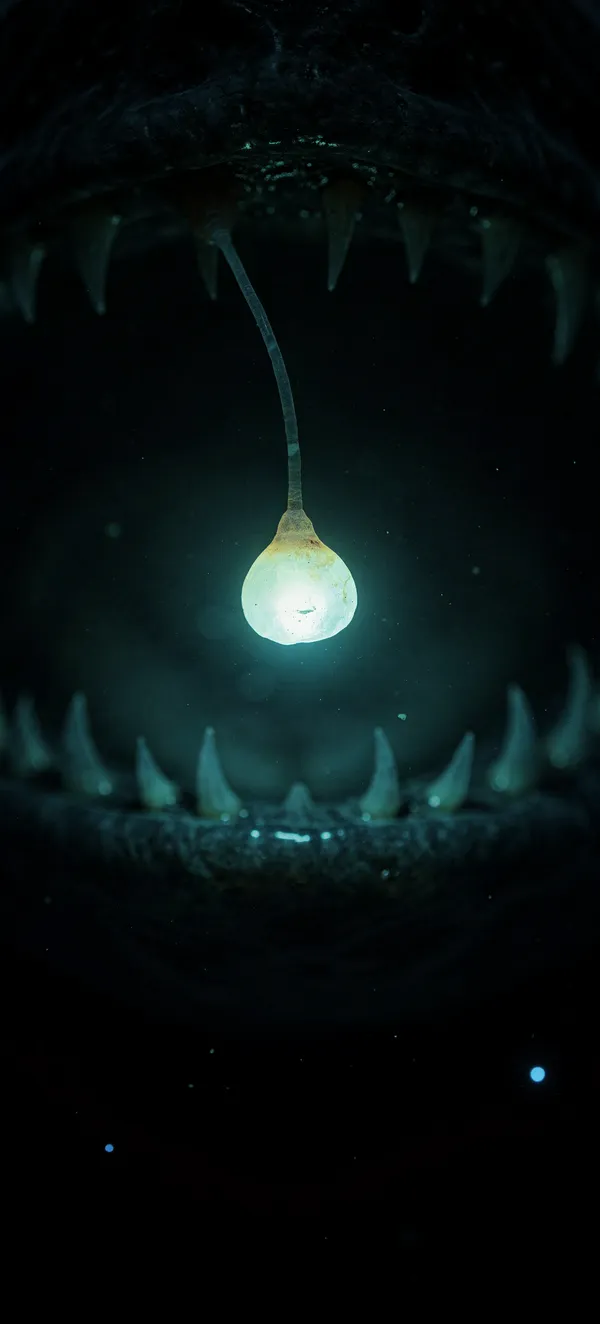 Dark / AMOLEDUltra-dark deep sea anglerfish wallpaper with stunning bioluminescent lure. Perfect black AMOLED background for phone with mesmerizing ocean creature detail.