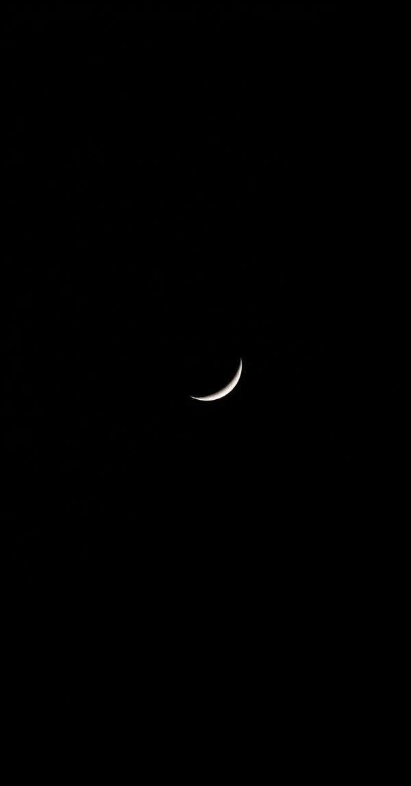 Dark / AMOLEDThin glowing crescent moon on pure black background, subtle silver light, minimal AMOLED dark wallpaper, 4K phone wallpaper