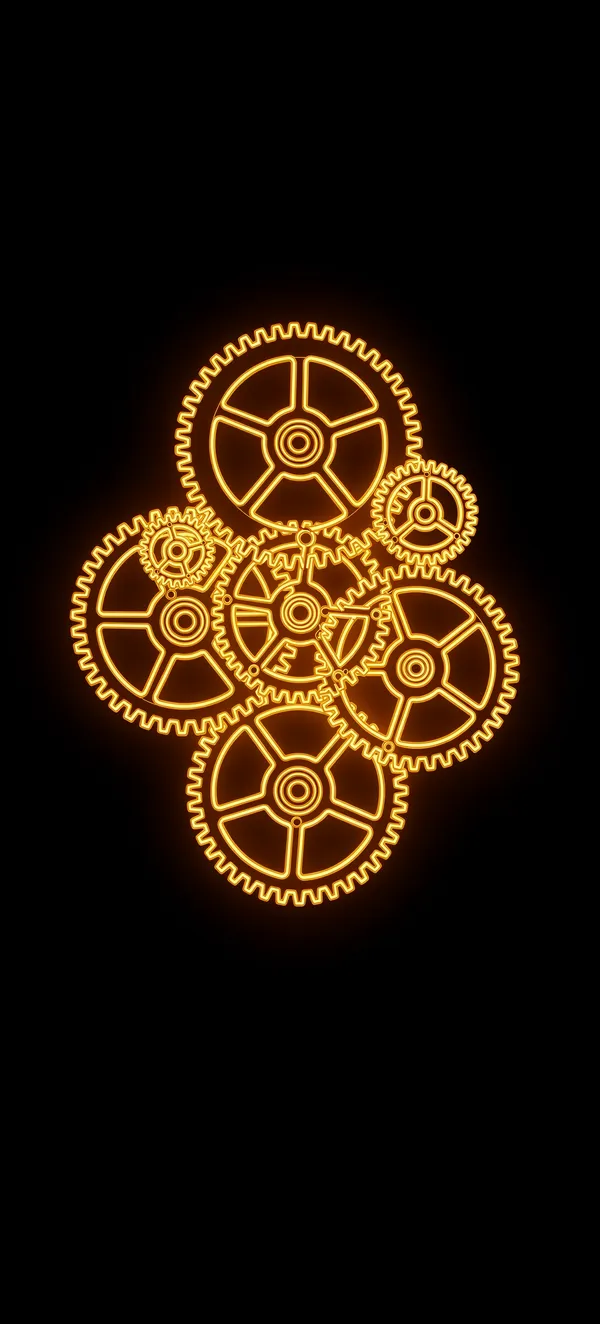 Dark / AMOLEDUltra-crisp dark AMOLED wallpaper featuring a precision golden-lined mechanical gear against pure black background, perfect for minimalist phone design enthusiasts.