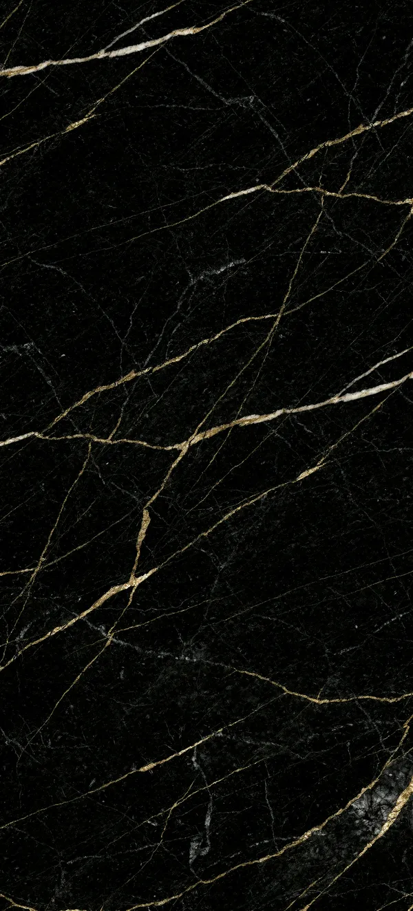 Ultra-dark AMOLED wallpaper featuring elegant black marble texture with thin golden veins. Minimalist, high-contrast design perfect for phone backgrounds.