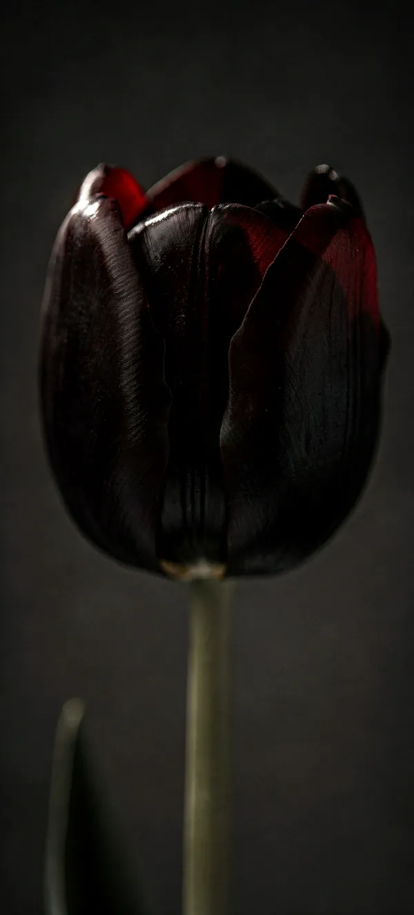FlowersUltra-detailed dark maroon tulip wallpaper with dramatic lighting, perfect high-resolution background for elegant smartphone screens. Dark floral HD quality.