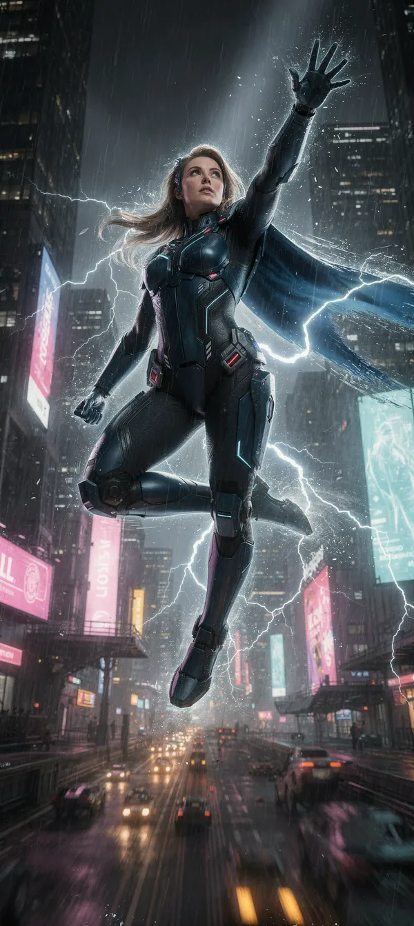 Cyberpunk Heroine Lightning Strike