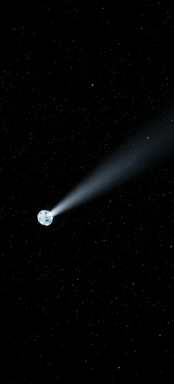Dark / AMOLEDUltra-dark space wallpaper featuring a stunning blue-white comet against a pure black starry background. Perfect AMOLED background for minimal, cosmic design lovers.