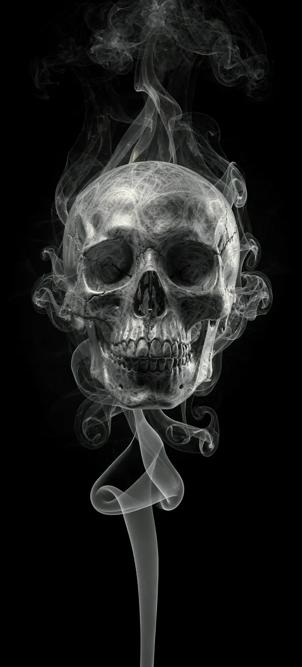 Dark / AMOLEDHaunting dark AMOLED wallpaper featuring a mesmerizing smoke skull emerging from pitch-black background, perfect for minimalist phone screens.