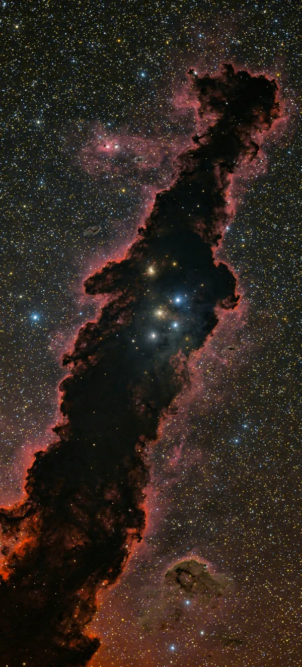 Immerse yourself in the cosmic beauty of IC 1396 with this high-resolution space wallpaper featuring dramatic stellar formations and ethereal gas clouds.