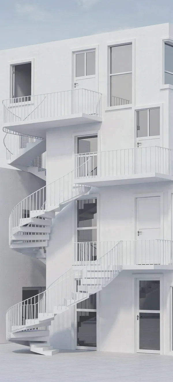 AbstractMind-bending abstract architectural wallpaper with impossible perspectives, clean white design, and subtle blue shadows. High-resolution digital art for modern smartphone backgrounds.