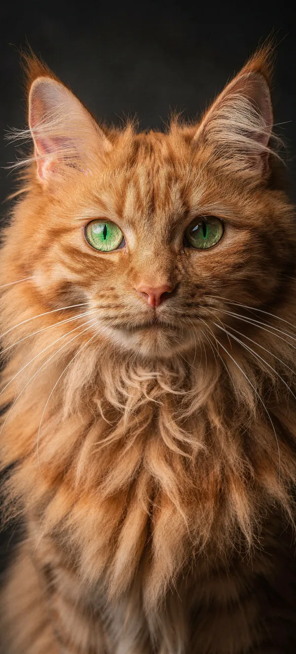 AnimalsHigh-quality close-up wallpaper of a stunning ginger cat with mesmerizing green eyes and luxurious fur, perfect for animal lovers and smartphone backgrounds.