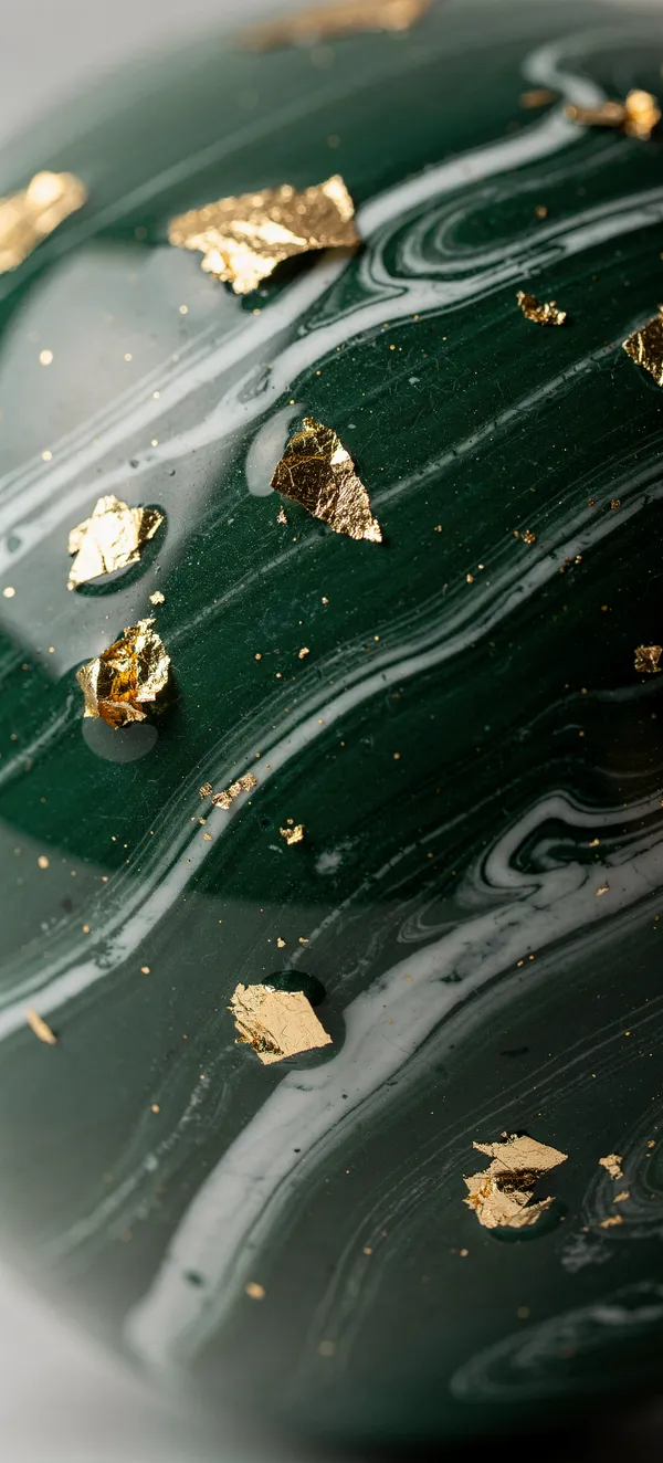 AbstractLuxurious abstract phone wallpaper featuring deep forest green liquid marble texture with white veins and golden highlights. High-resolution, elegant design for mobile backgrounds.