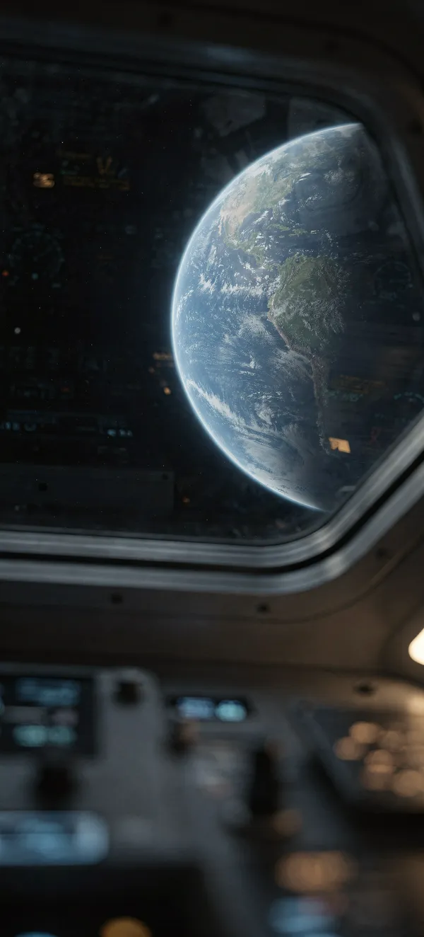 Breathtaking space wallpaper featuring Earth from Orion spacecraft window with cinematic lighting, perfect HD background for space and astronomy lovers.