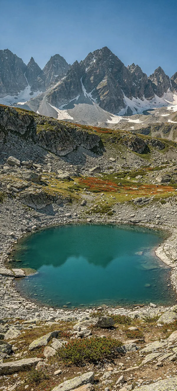 NatureStunning high-altitude landscape wallpaper featuring a turquoise mountain lake, rocky terrain, and majestic alpine peaks in crystal-clear resolution.