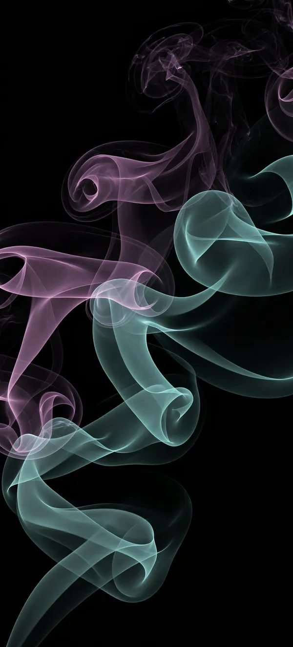 AbstractEthereal abstract wallpaper featuring soft, swirling purple and teal smoke streams on a deep black background. High-resolution, elegant mobile background design.