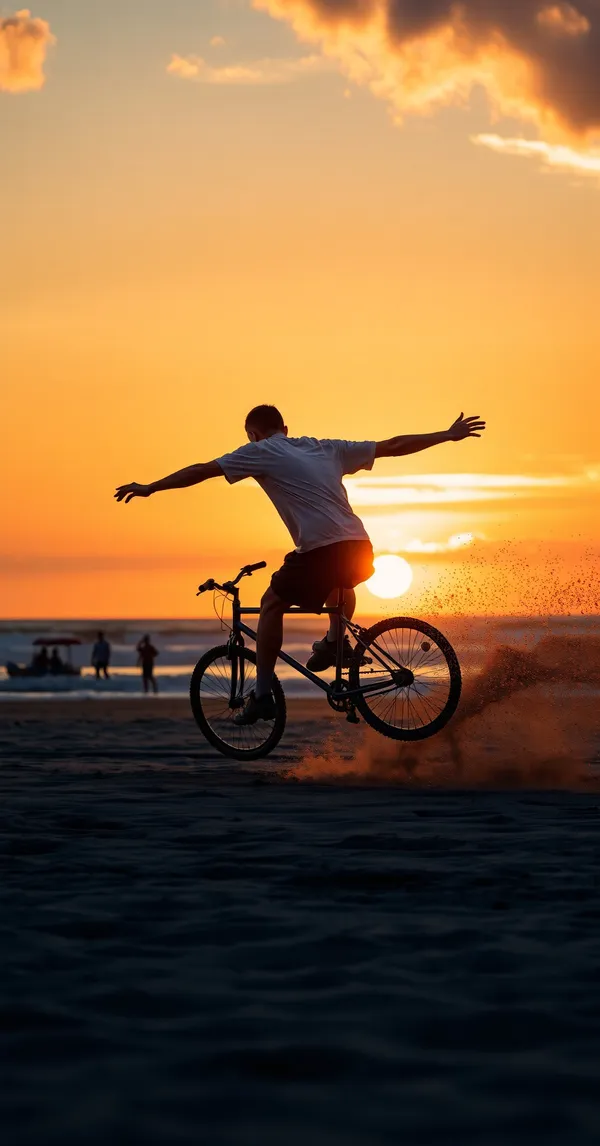 SportsSoccer player bicycle kick at sunset on beach, sand particles flying, golden hour light, photorealistic action shot, 4K phone wallpaper