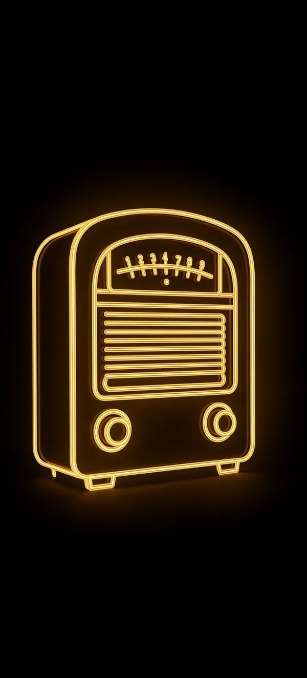 Dark / AMOLEDUltra-dark AMOLED wallpaper featuring a golden neon vintage radio outline on pure black background. High-quality minimalist retro communication design.