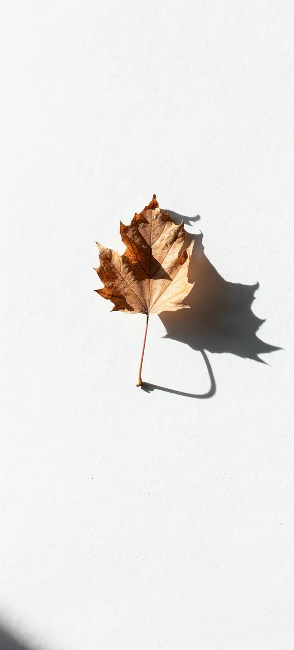 MinimalElegant white minimal phone wallpaper featuring a delicate leaf shadow, creating a serene autumn-inspired botanical silhouette with soft, clean aesthetic.