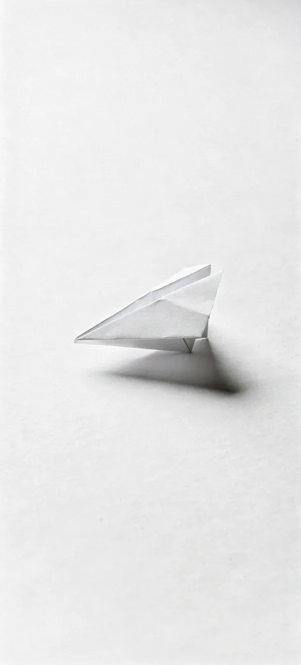Clean, geometric white origami paper airplane wallpaper with subtle shadow. Elegant minimal design perfect for modern smartphone backgrounds in crisp HD quality.